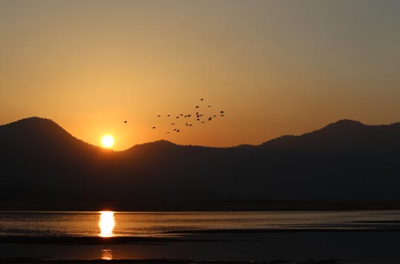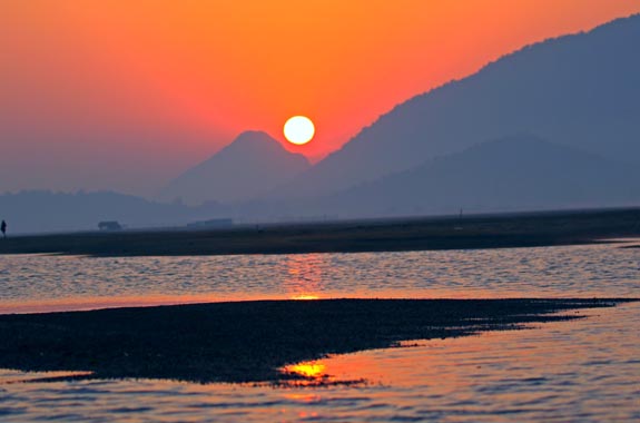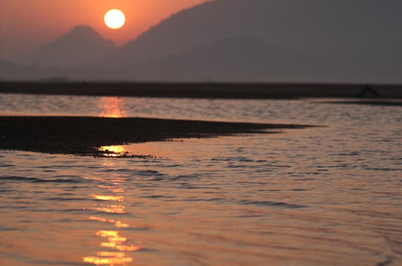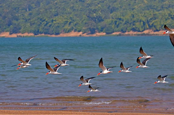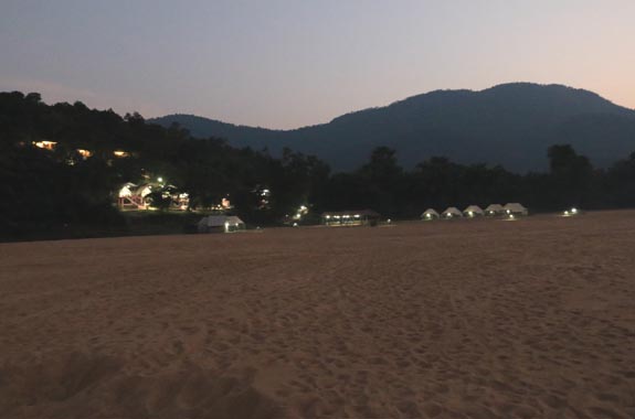 Surrounded by the jungles of Satkosia Tiger Reserve, on the bank of river Mahanadi “Satkosia Sands Resort” at Badmul is on the foothills of majestic mountains facing the Satkosia Gorge of magnanimous Mahanadi River meandering through the golden sand bars. The alarm call of Spotted Deer & Sambar makes one realize that Satkosia is a Tiger Reserve after all. It’s the jungle of Leopards, Dholes and Wild Cats. The Crocodiles basking on the white sands on a wintery morning with the backdrop of rising sun is a picture that is real here. The eco-resort has has 3 luxurious AC Cottages& 4 Luxurious AC Swiss Cottage Tented Cottages on mountain slope facing the Satkosia Gorge and the eco-campus has 16 luxurious Swiss Cotton Tents pitched on the Sandbar of River Mahanadi. The tourists can spend evenings watching local Folk dance rounding it off with Star Gazing, Open Sky Dinner on Sandbar. Boating in the Satkosia Gorge, Cycling in the Jungle, trekking through the hills with our veteran Eco-Guides makes your day well spent in the wild. Satkosia Gorge is also a favorable destination for many migratory birds. In winters, Badmul is the only place where 100’s of Indian Skimmers can be seen on Sandbars with Brahminy Ducks, Pintails, Bar Headed Geese, Thicknees’s, Pratincoles, Herons, Gulls, Lapwings etc. You can see Muggers & Turtles basking on River bank/ Sandbar during Boating in Satkosia Gorge (Satkosia Boat Ride). The Resort offers organic, delicious Odiya & Indian Veg/Non-veg cuisine in the open sky dinning on River Sandbar overlooking the Gorge, River & Mountains.